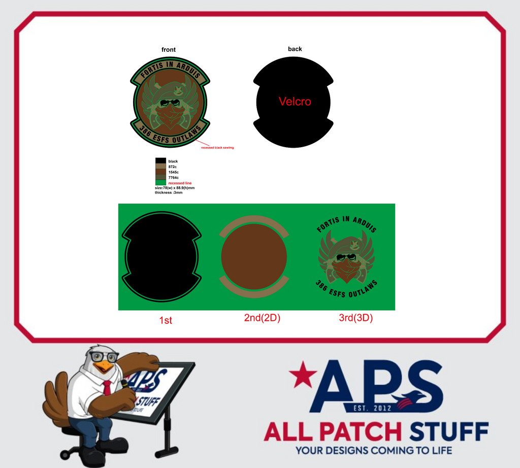 PVC Patches; 3.5 inch 386 ESFS Outlaws custom PVC Patch With Velcro.