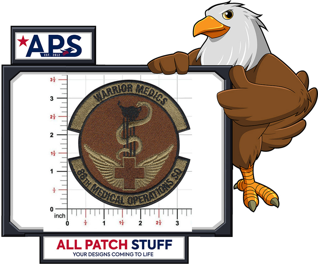 Custom Patches; 3.5 inch 88th Medical Operations Squadron Embroidered patches with velcro backing.