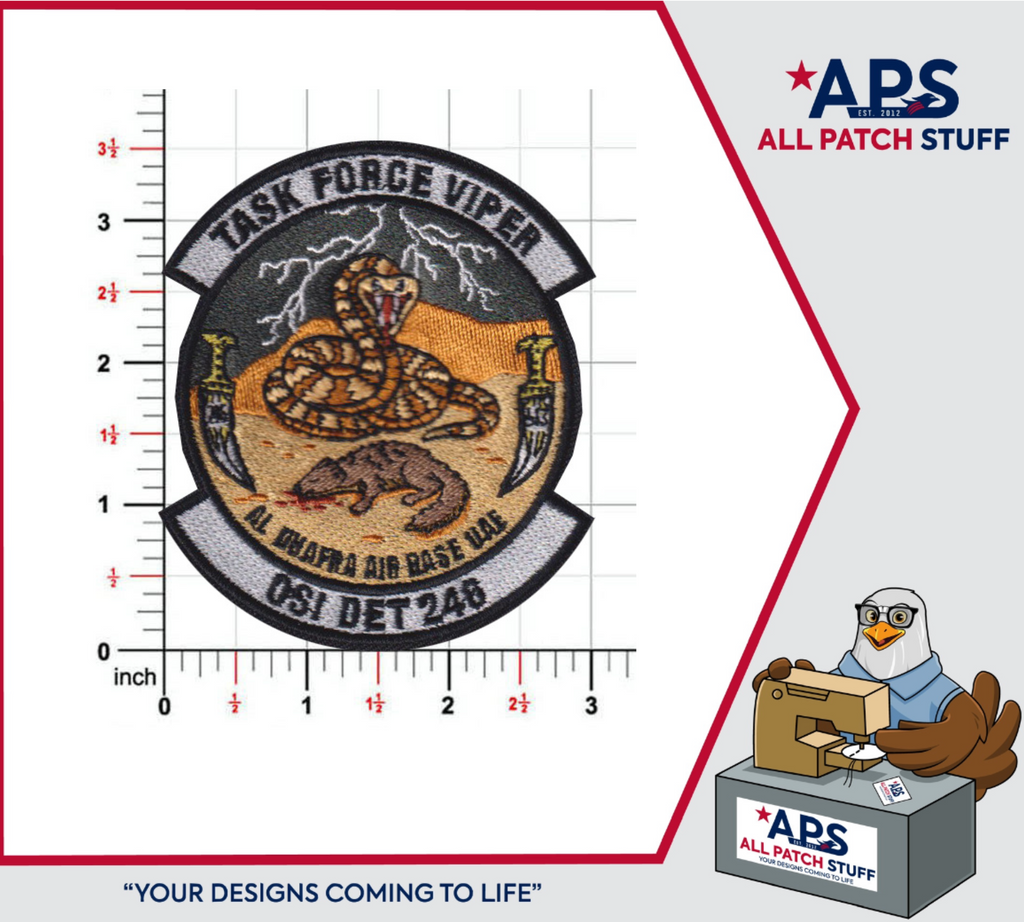 Custom Patches; 3.5 inch Task Force Viper Embroidered Patch With Velcro.