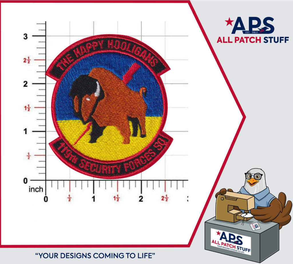 Custom Patches; 3 inch 119th Security Forces Squadron custom Embroidered Patch w/ Velcro