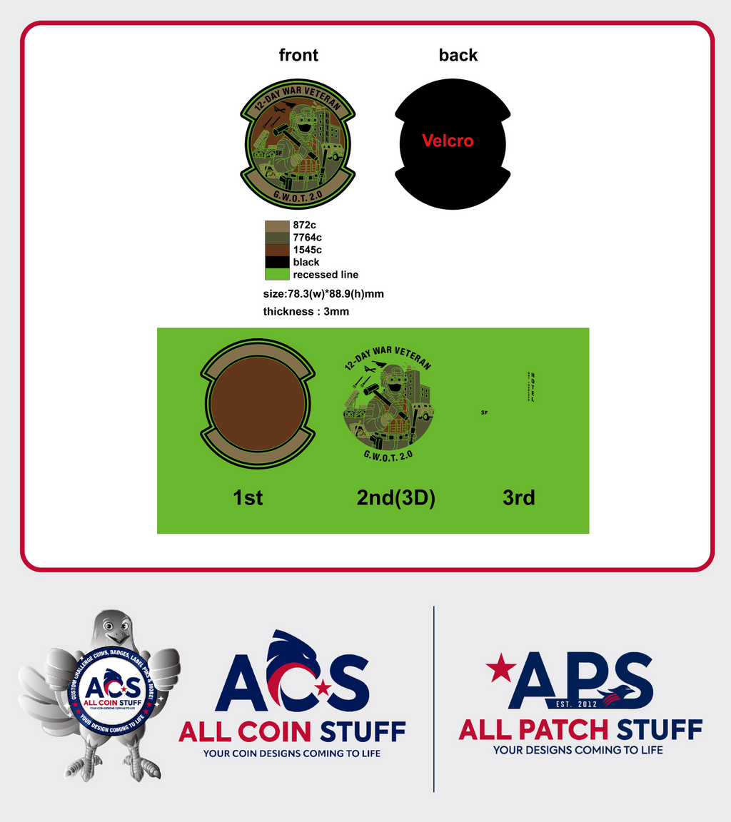 PVC Patches; 3.5 inch 12 Day War Vet PVC patch w/ Velcro