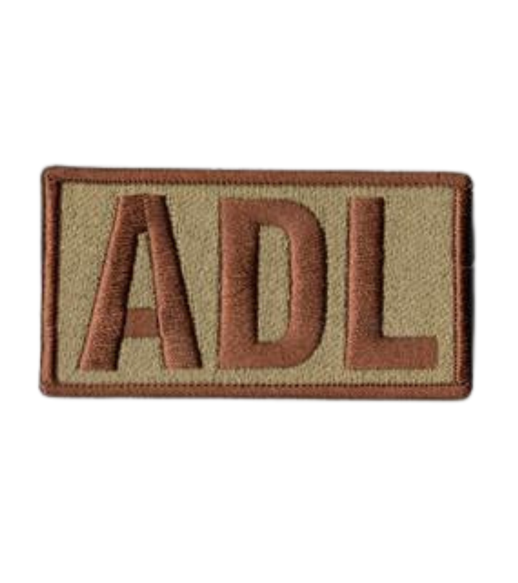 ADL velcro patch with Spice Brown Lettering.