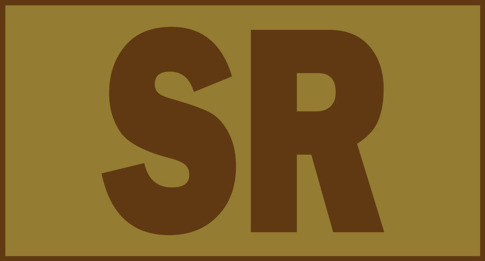 SR velcro patch with Spice Brown Lettering.